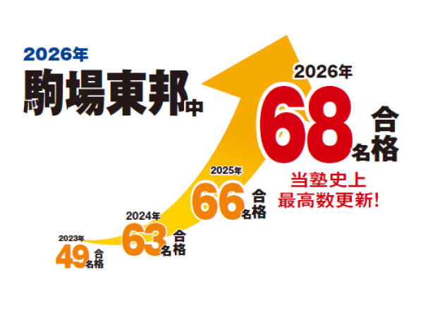 令和初の入試であった令和2年の早稲田アカデミーからの合格者数は31名。その後授業内容にさらに磨きをかけ、この3年間は連続して合格者数を伸ばし、令和8(2026)年入試ではついに合格者数は68名となりました。社会の12年連続的中をはじめとして、入試問題を長年にわたって研究してきた担当講師が、毎回の授業テキストも作成。1学期のNN前期講座では「駒場東邦中がなぜその問題を出題するのか」を問題演習を通じて体得してもらい、勉強に向かう姿勢から鍛えてまいります。