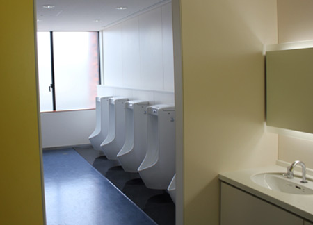 入ると自動で電気がつくトイレ。無駄な電気を使わない省エネ設計。